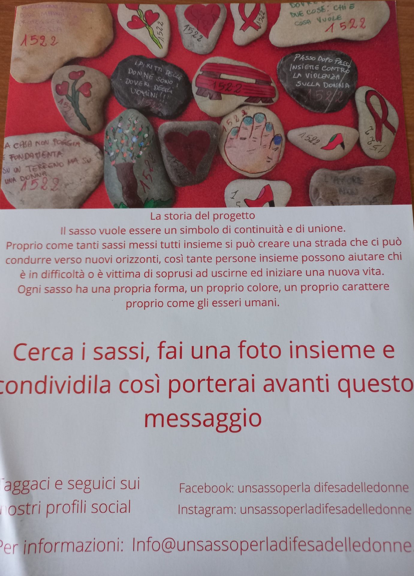 PROGETTO UN SASSO IN DIFESA DELLE DONNE 2022