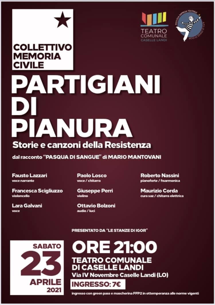 Storie e canti della Resistenza con lo spettacolo PARTIGIANI DI PIANURA .