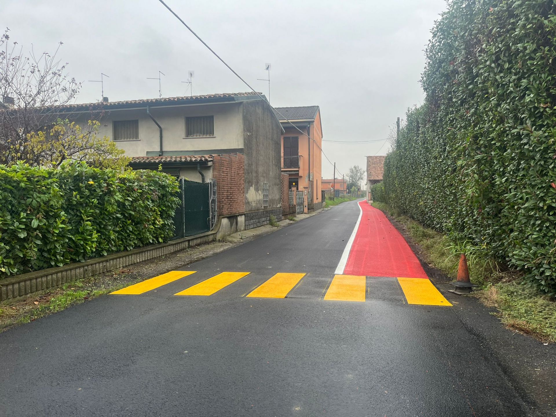 La bike Line in via Montelungo è praticamente terminata, manca la linea bianca di bordo strada sulla sinistra e i simboli delle biciclette sul tratto rosso. Il senso unico è operativo con tutta la segnaletica del caso.