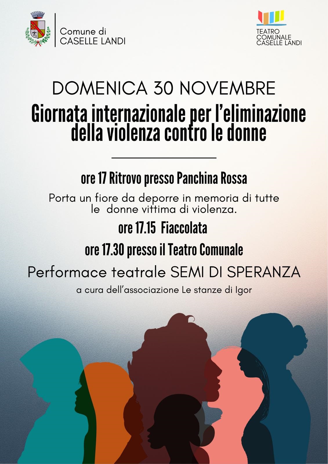 La locandina illustra il programma previsto in occasione della Giornata Mondiale Contro la Violenza sulle Donne