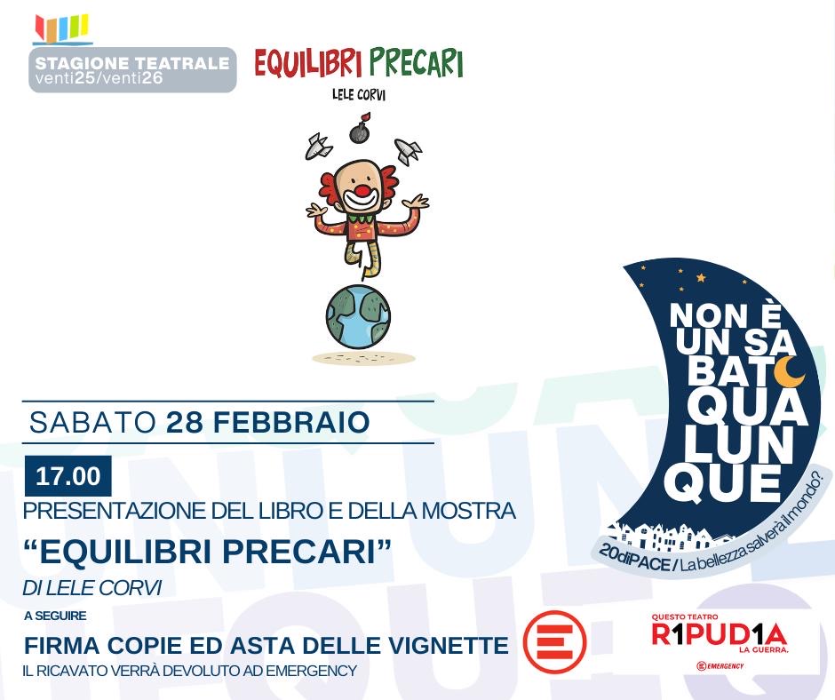 🔴 SABATO 28 ORE 17 presentazione del libro “Equilibri precari” di Lele Corvi, FIRMACOPIE E ASTA DELLE VIGNETTE